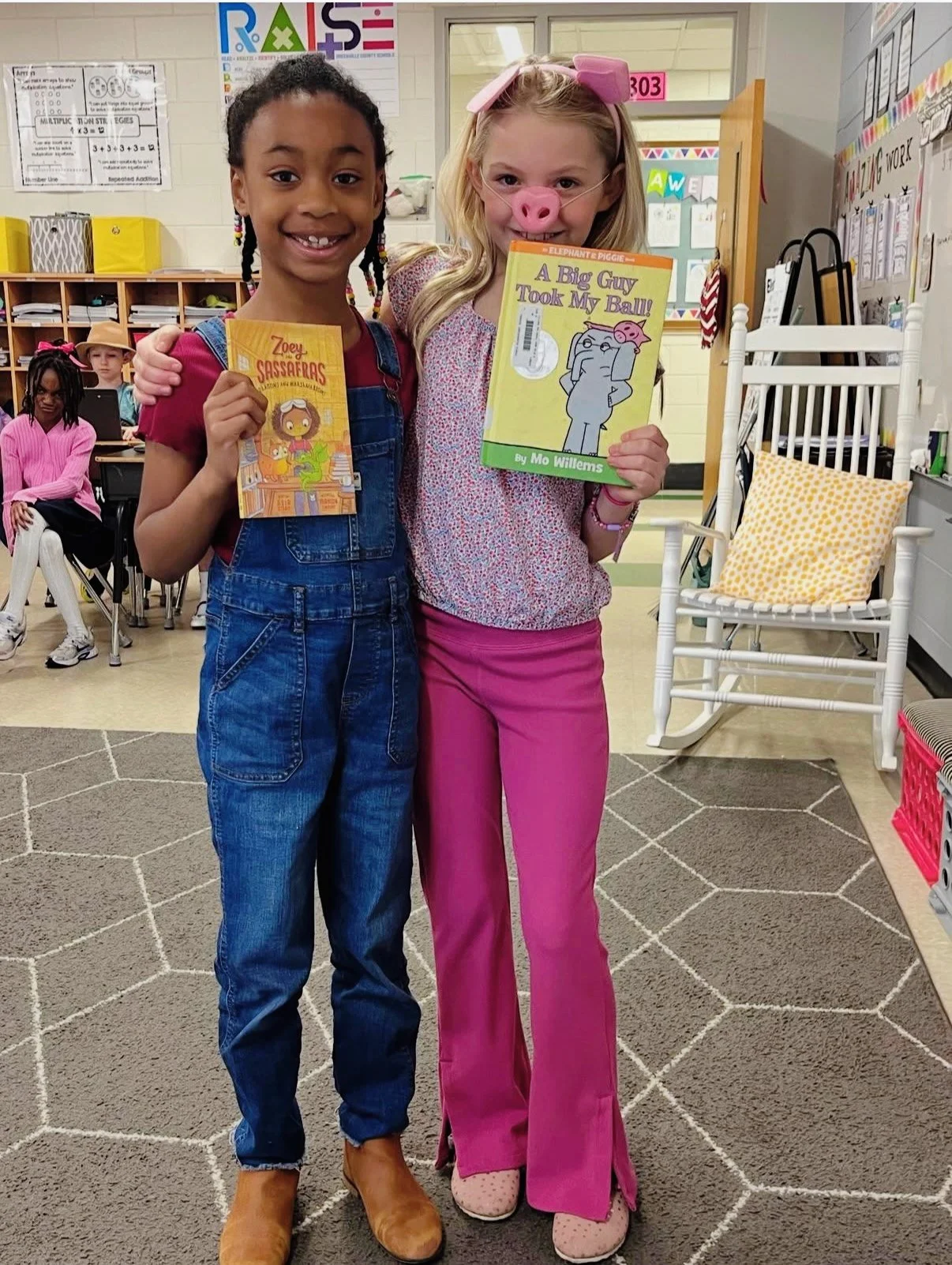 Zoe decided to dress up as Zoey from Zoey and Sassafras again this year. She looked so cute! I didn’t get a picture before she left for school but thankfully her teacher got this pic of her with her friend, Chloe.